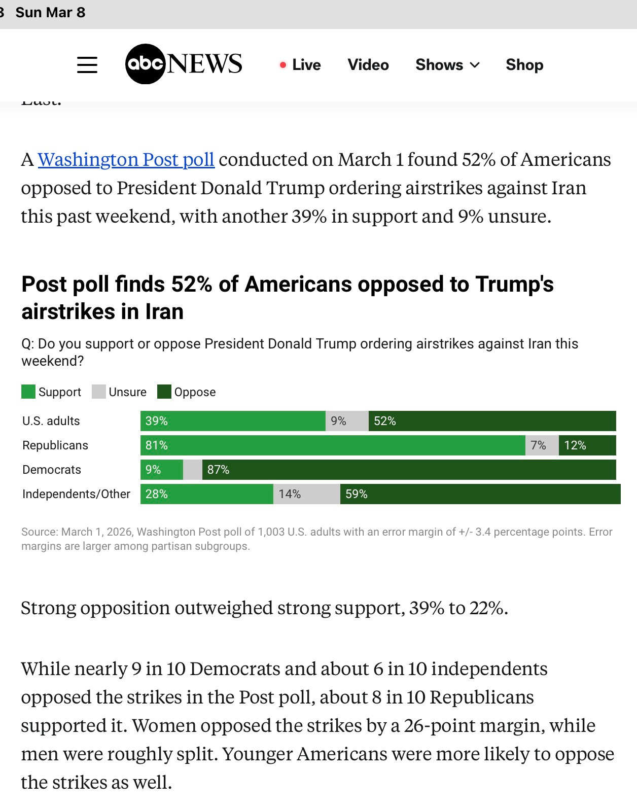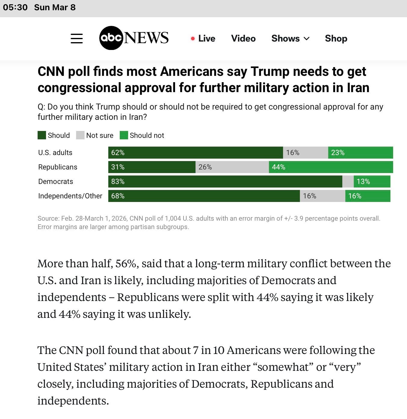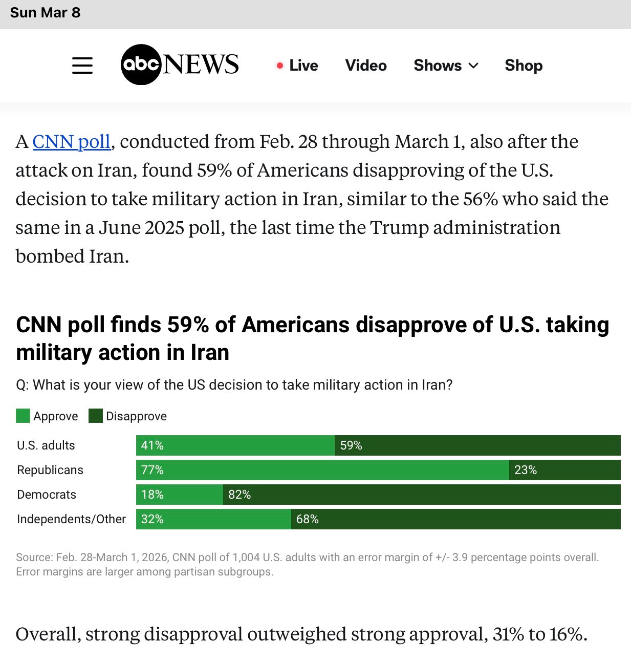 In the poll above, approximately 80% of Republicans poled through March 1, 2026 support Trump’s illegal bombing of Iran. Right now in America, evil reigns.